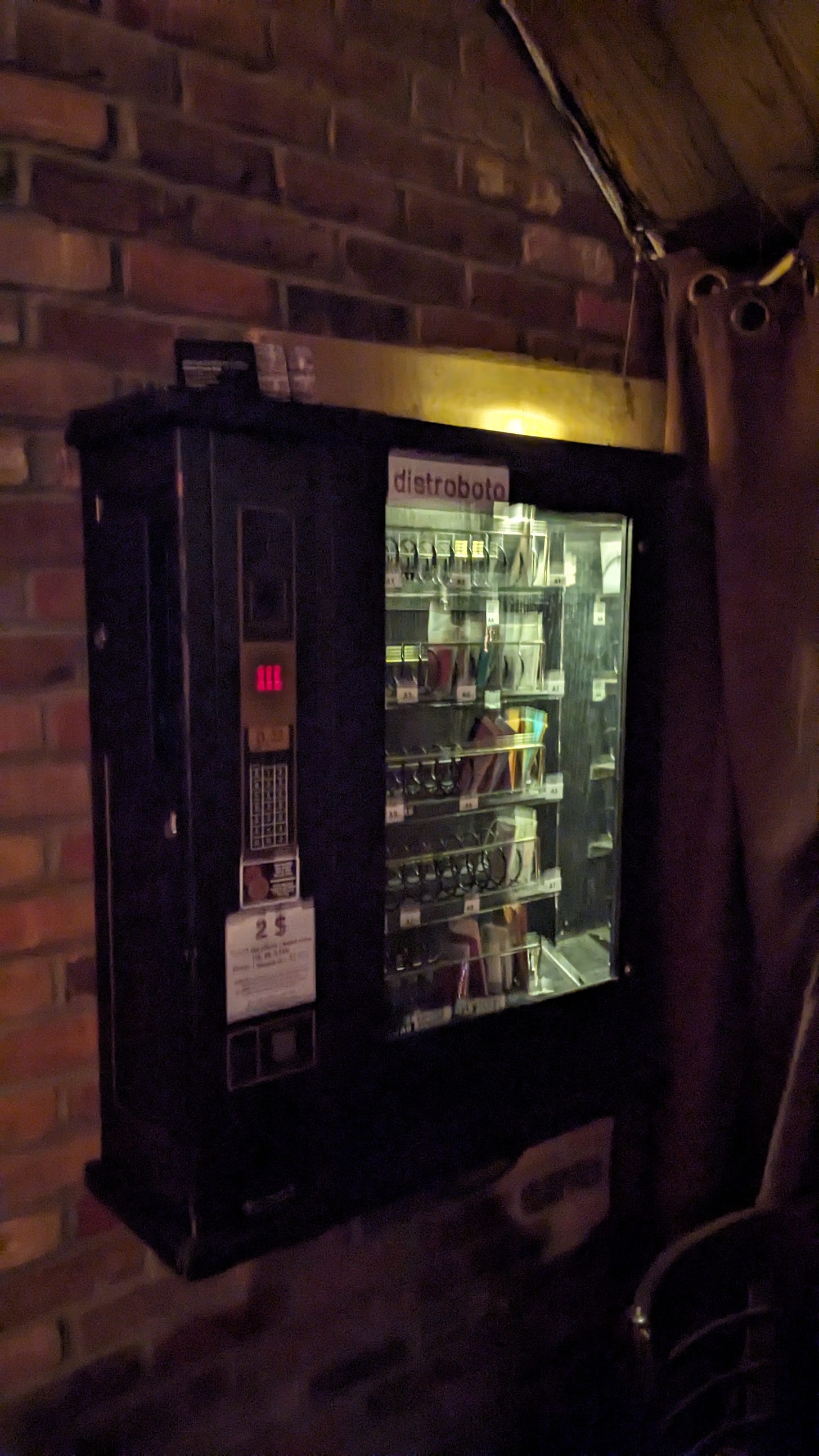 One of the locations is at a bar that I have been to. I might have seen it at the bar the first time I was there. If I did, I didn’t know what the vending machine was for.